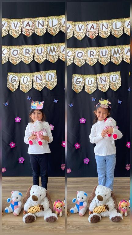 Hayvan dostlarımız için mama hazırladılar.Evcil hayvanları sınıfta misafir ederek eğlenceli sohbetler yaptılar . Hayvan Dostu sanat etkinliği çalışmalarıyla hayvan taçları hazırlayıp hayvan koruma rozeti taktılar.